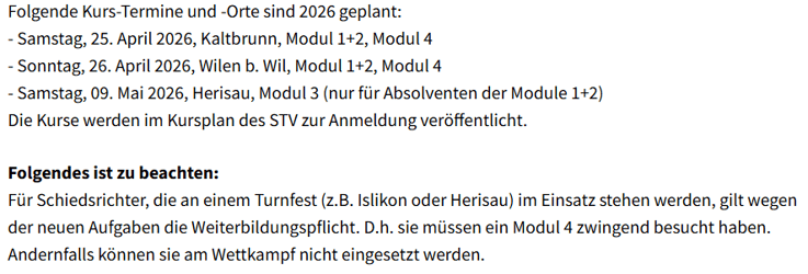 Für einen Richterkurs im 2026 gibt es aktuell folgende Angaben: